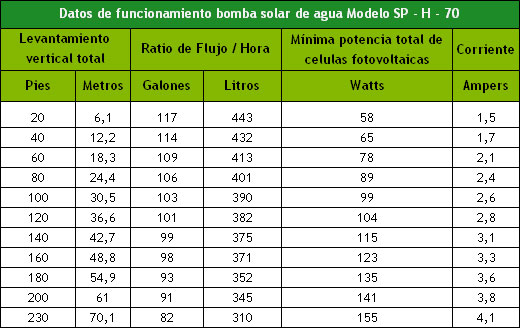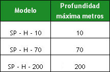 Las bombas de agua de la serie SP son para usos de profundidad entre 10 y 200 metros. Sus datos técnicos son: