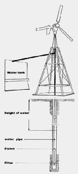 La bombas eólicas de tipo WINDSOL (WP) son producidas en tres tipos básicos: Con hojas de 3, 4 o 6 aspas. Se emplea un tipo de bomba de membrana que es ideal para bajas profundidades (bombeo de 7 a 8 metros de profundidad). Para una profundidad mayor se utiliza una bomba de pistón instalada en el borde de la tubería que se mete en el pozo o en la perforación. Todas las piezas son de acero inoxidable para su protección anticorrociva.