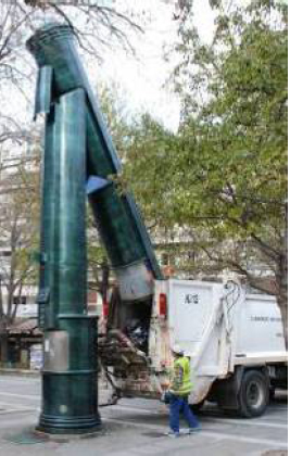 Vaciamiento automático y recolección de los residuos por medio de un tablero de control externo, para los ya existentes vehículos de recolección municipales, de forma rápida y silenciosa.